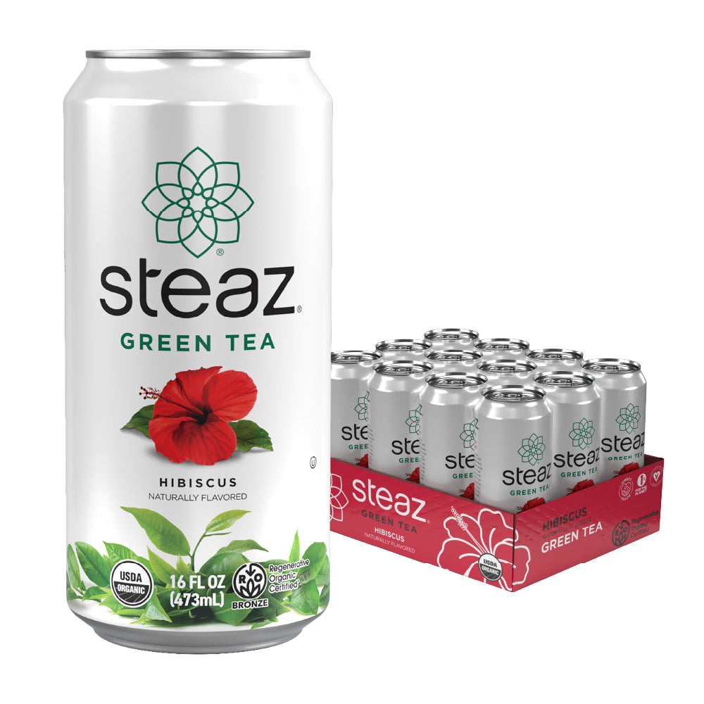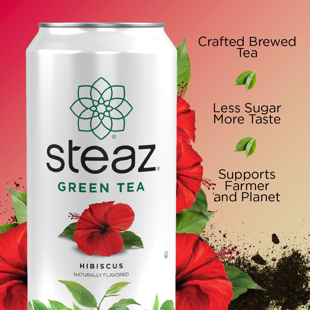 Floral and tropical with a smooth, botanical finish, our Steaz Hibiscus Green Tea is a vibrant escape in every sip.