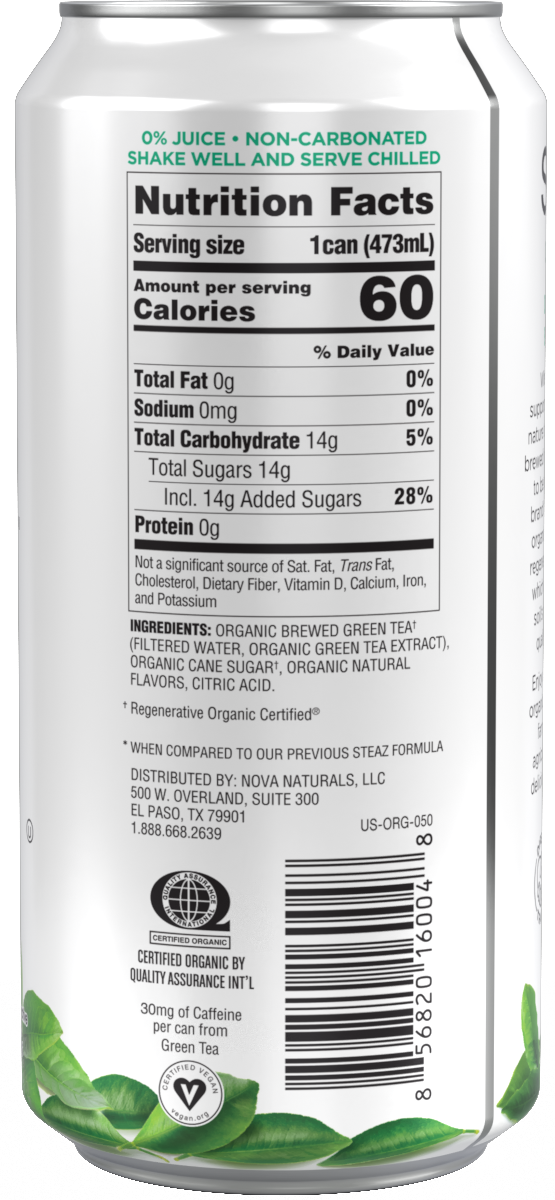 Refreshing, cool, and crisp, our Steaz Mint Green Tea delivers a pure, invigorating sip that brings balance to your day.