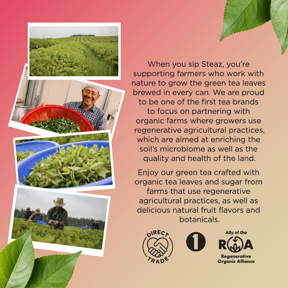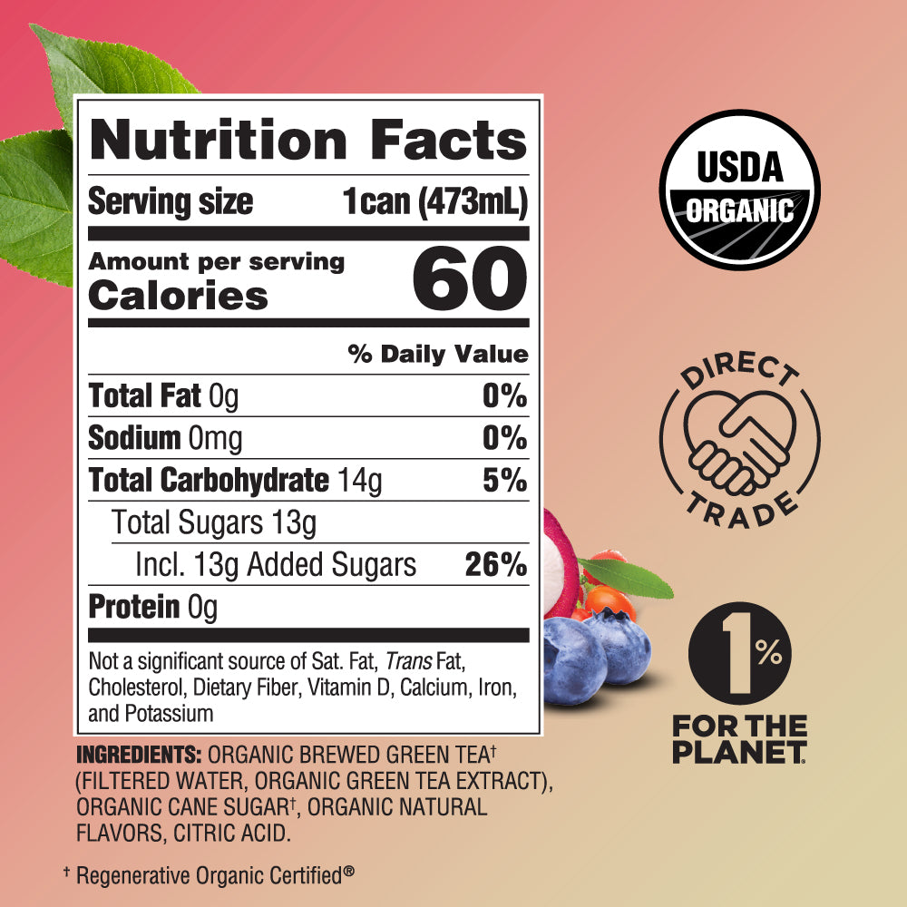 Each sip bursts with layered, juicy flavor balanced by smooth regenerative organic green tea.