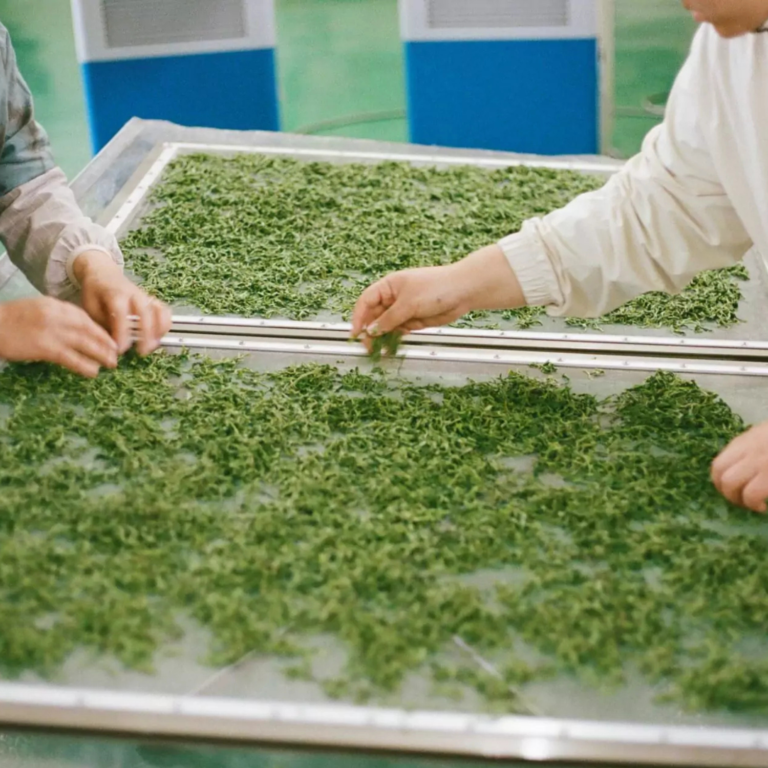 Before processing, we wash our tea leaves four times — a meticulous step we added to remove dust, fine particles, and impurities without affecting the delicate structure of the leaf.